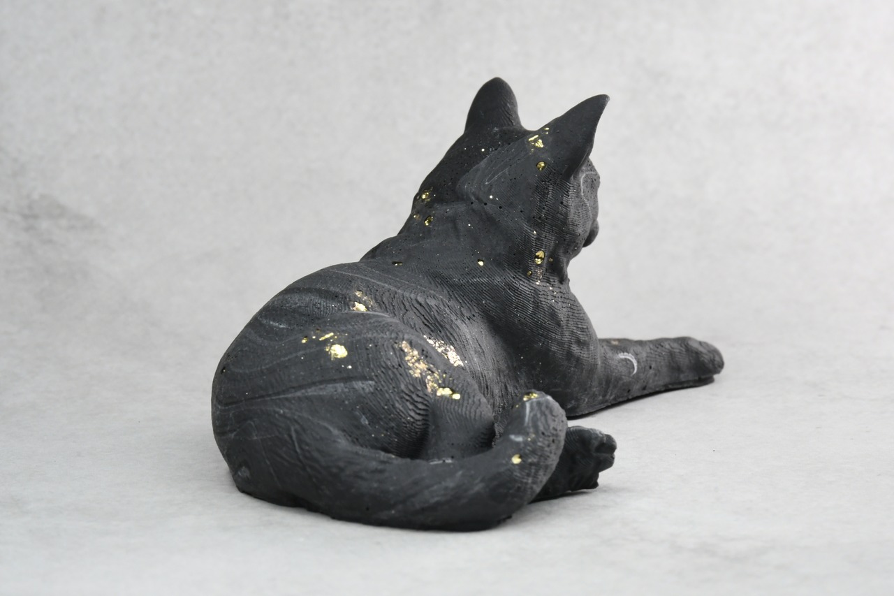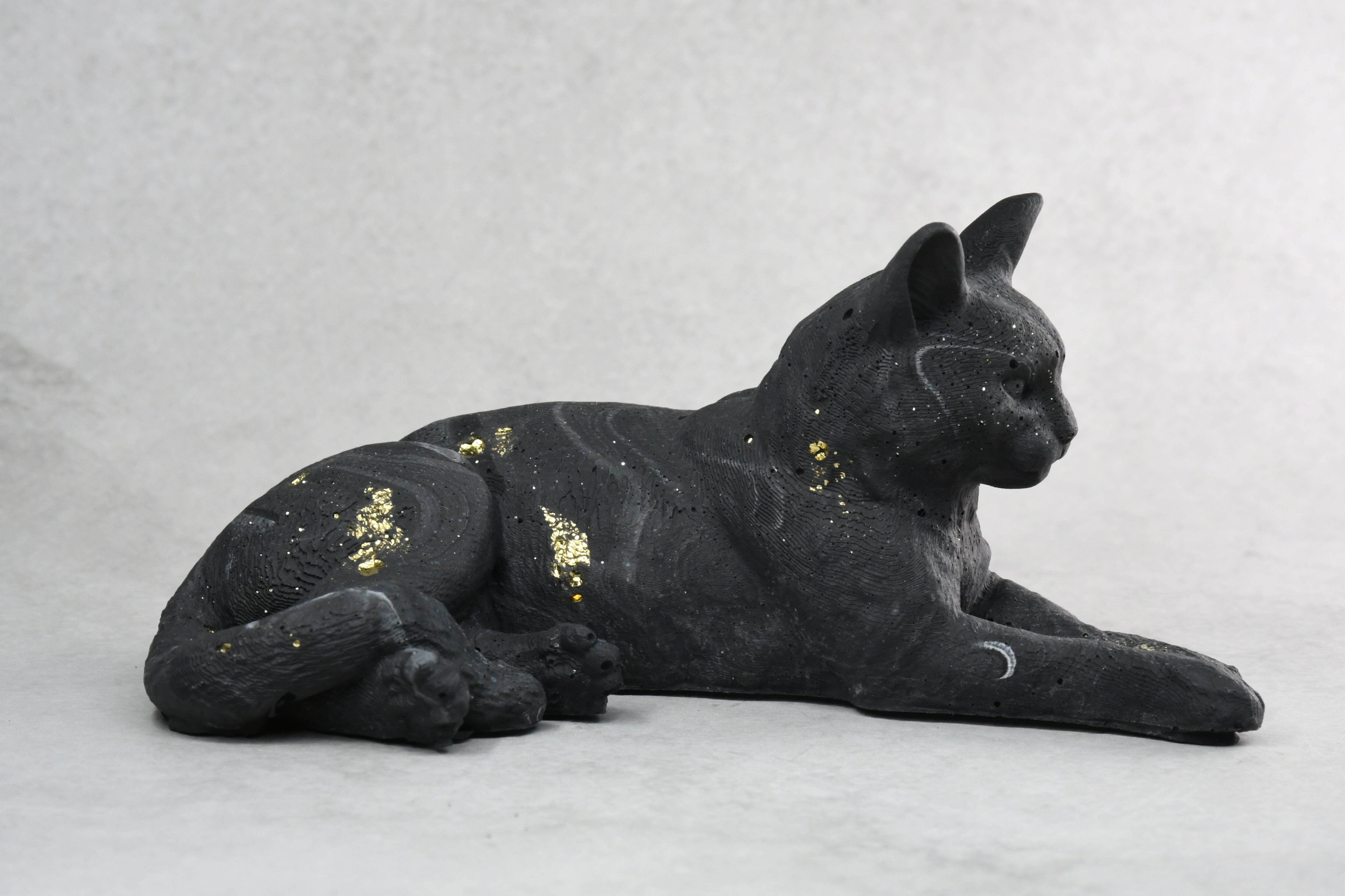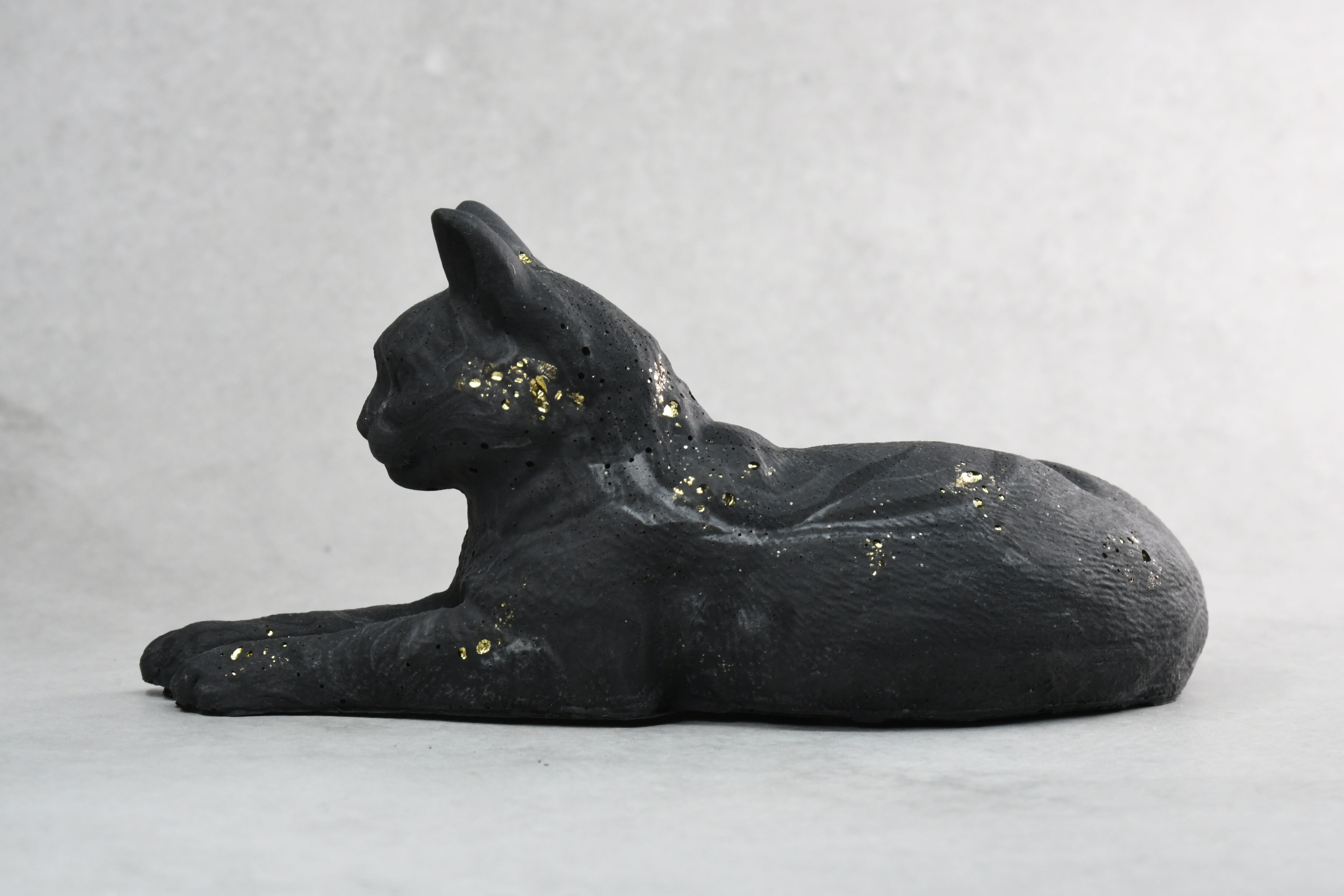 スフィンクス座りをした短毛猫モチーフのオブジェ