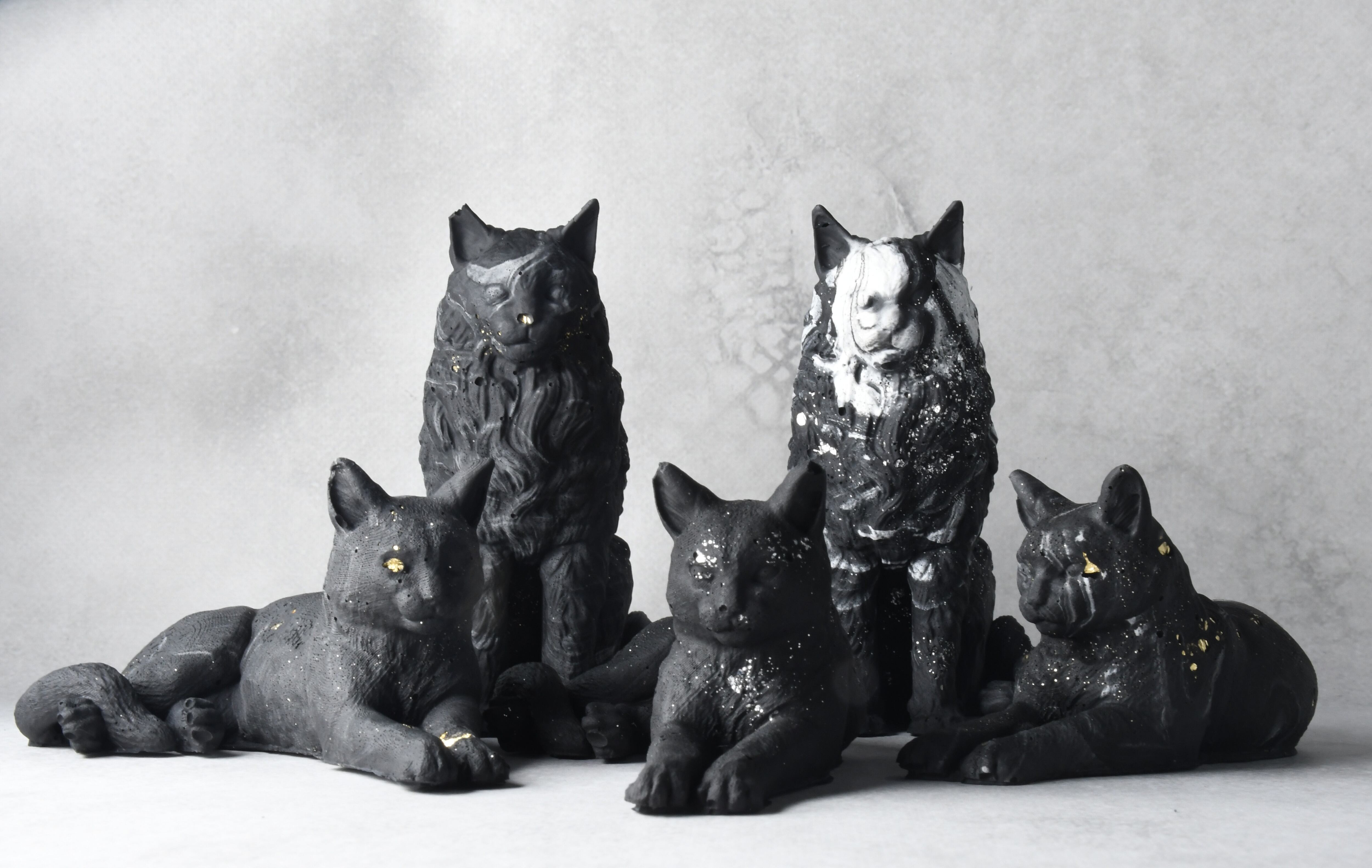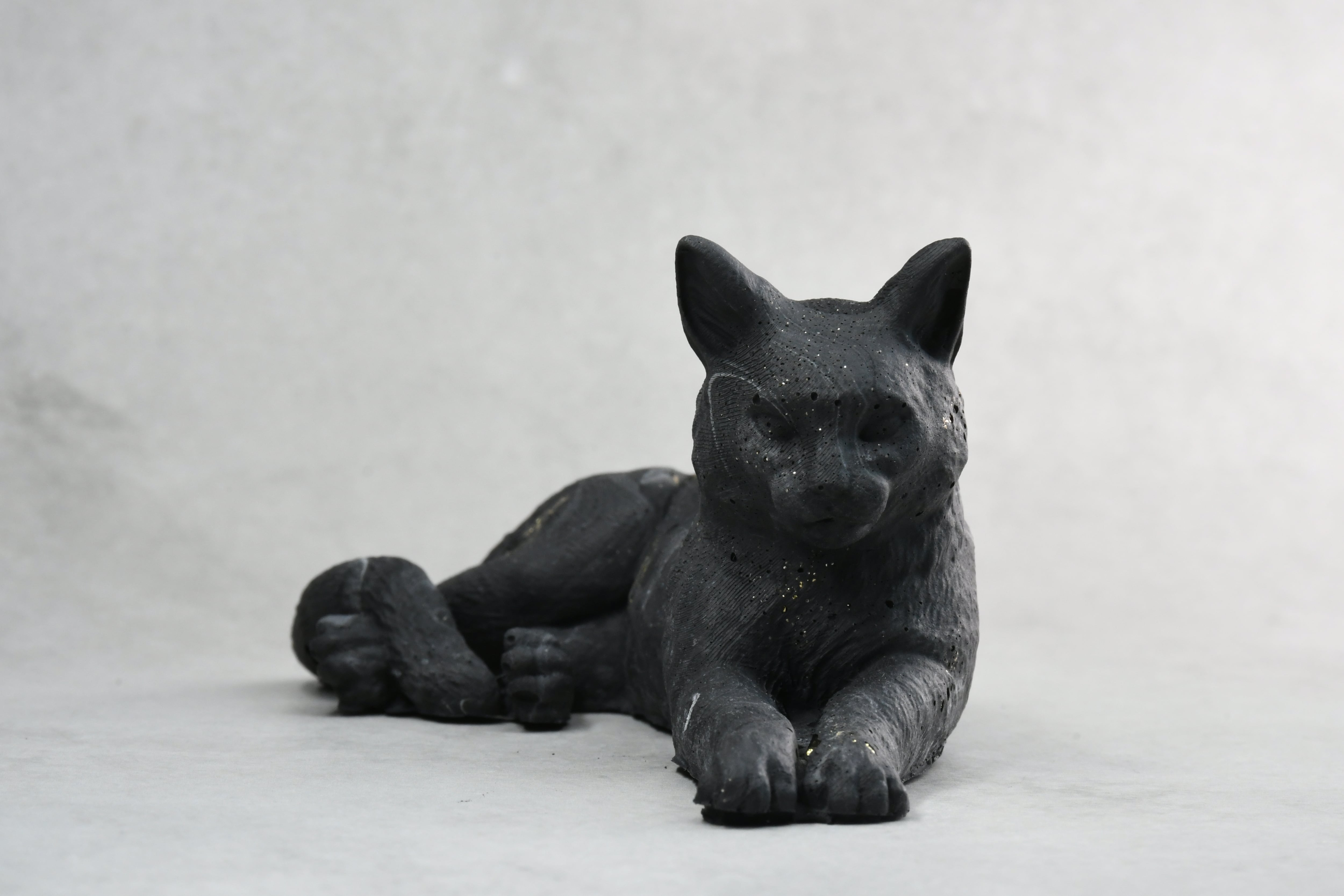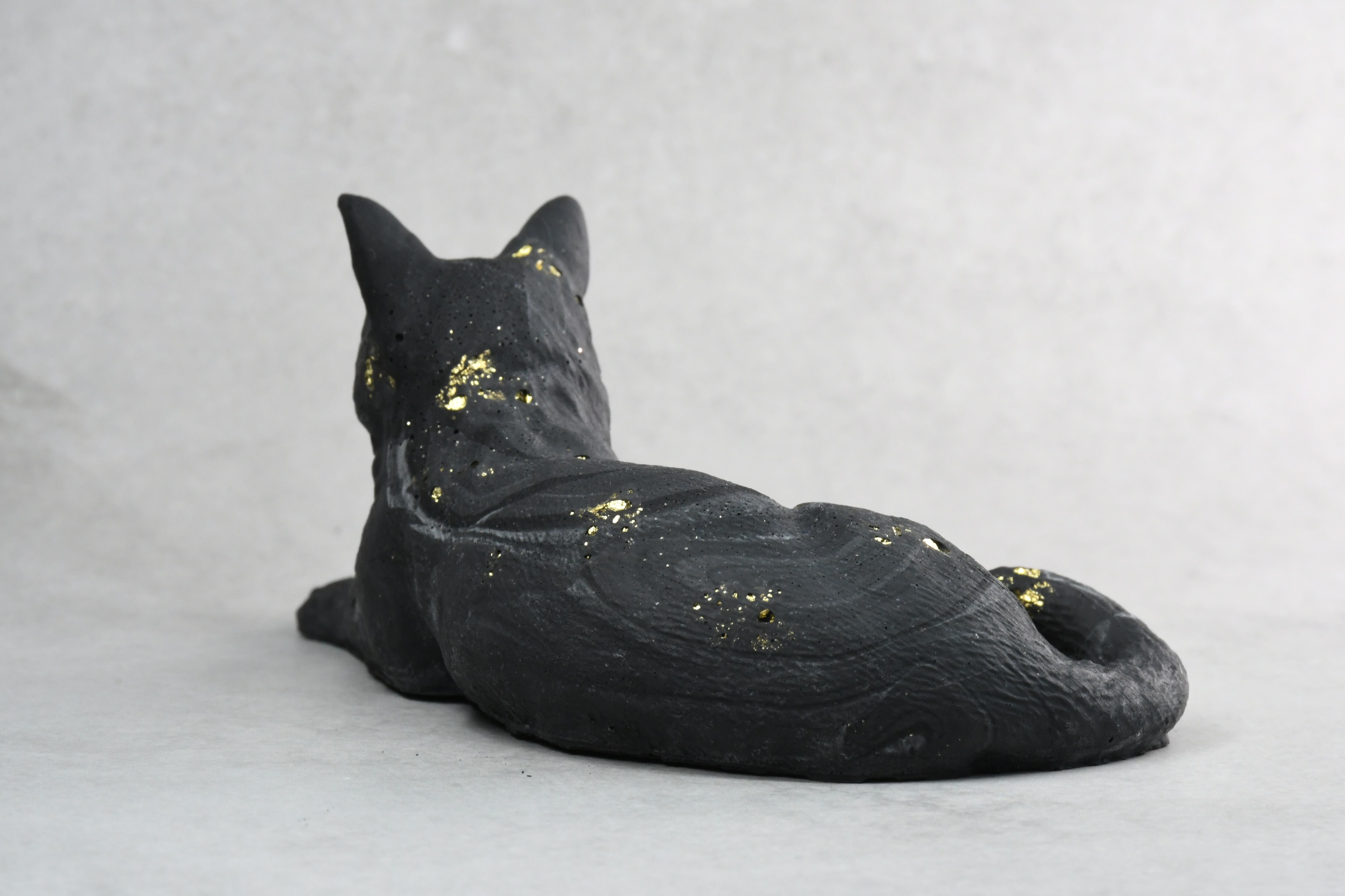 スフィンクス座りをした短毛猫モチーフのオブジェ