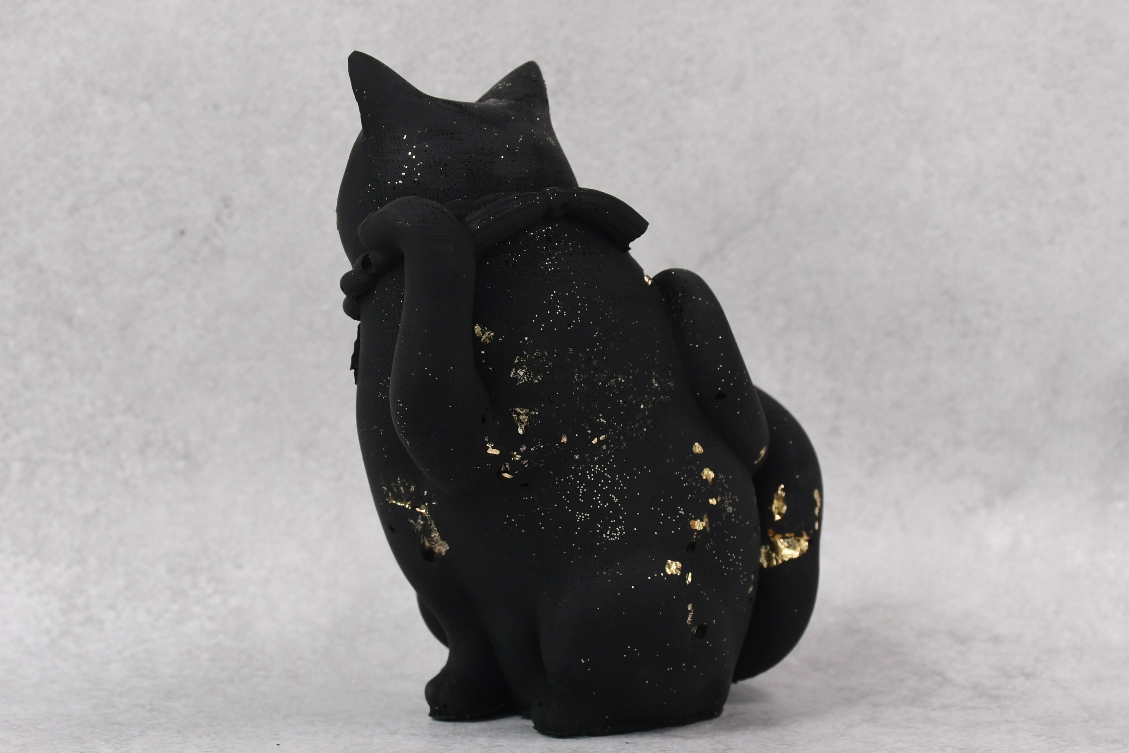正面から見てもわかるよう横向きの招き猫に。